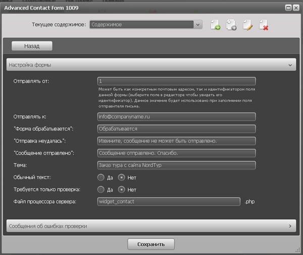 Создаем форму онлайн-заявки, при помощи модуля Advanced Contact Form