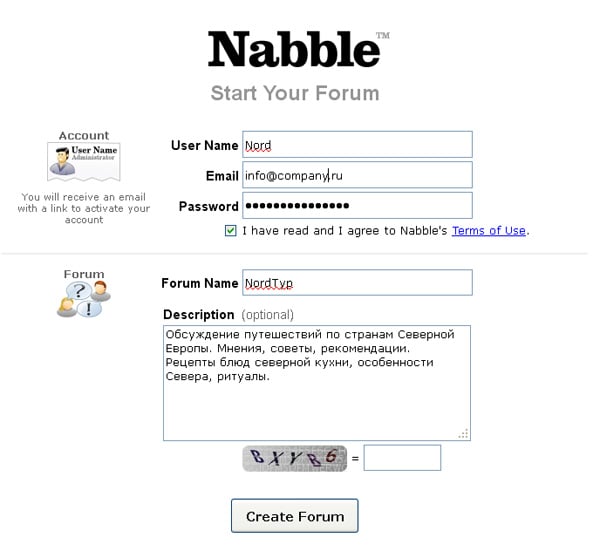 Заходим на сайт http://n5.nabble.com/free-forum.html и проходим процесс регистрации.