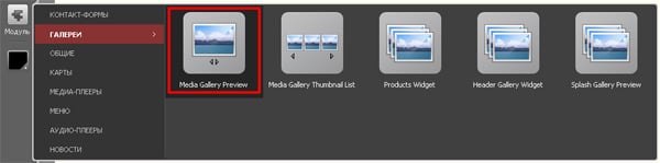 Для создании видеогалереи мы будем использовать два встроенный модуля: Media Gallery Preview и Media Gallery Thumbnail List. В первую очередь добавляем модуль Media Gallery Preview.