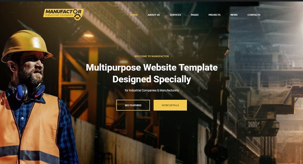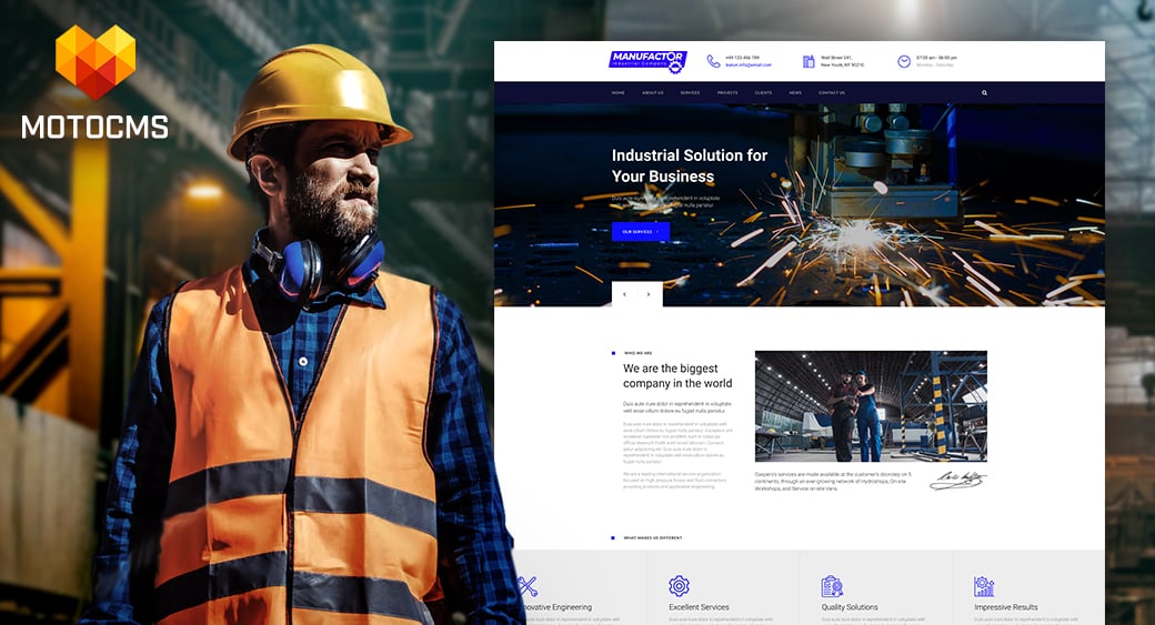 ManuFactor это новый уникальный шаблон промышленного сайта от MotoCMS. В его основе лежит профессиональный индустриальный дизайн. И он, несомненно, отлично подойдет любому, кто хочет создать высокофункциональный промышленный сайт. Вы производите тяжелую технику или занимаетесь химической промышленностью?