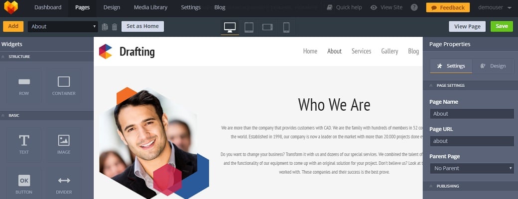 Почти каждый второй начинающий совершает одни и те же ошибки при попытках запустить веб-сайт. Все хотят создать одну идеальную страницу, которая превратится в шикарный сайт. Однако, на самом деле всё немного не так. На практике имеет смысл подобрать подходящий шаблон для сайта архитектора, а затем настроить его дизайн. С MotoCMS это легко, как дважды два. Просто войдите в админпанель и редактируйте свой сайт с помощью многочисленных инструментов и виджетов.