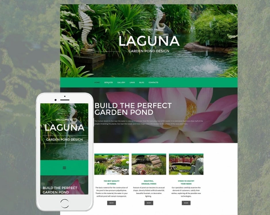 Вам придется изрядно поработать над поиском клиентов. В таком случае, собственный сайт действительно играет большую роль. Несмотря на то, что вы классный ландшафтный дизайнер, вы можете ничего не знать о веб-дизайне и кодинге. Это больше не проблема! В наше время создать сайт ландшафтного дизайна невероятно просто с помощью шаблонов MotoCMS, например такого как адаптивный шаблона сайта Laguna.