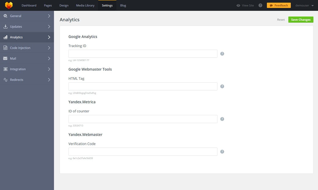 Но что более важно, так это то, что с помощью сайта вы отслеживаете периоды с низкими продажами. Благодаря вкладке Аналитика, вы можете связать свой сайт с Google или Яндекс Аналитикой и проверять, насколько ваш сайт успешен и предпринимать соответствующие действия.