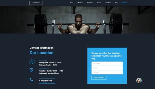 Дайте правильный сигнал вашим клиентам – позвольте им увидеть лица ваших сотрудников. Тем самым вы им говорите: “Тренеры такие же люди, как и вы”. Или “Они выглядят потрясающе и вы тоже сможете выглядеть так, если будете выкладываться на полную”. Рассказывая клиентам о жизненных историях ваших сотрудников, вы создаете дружественную атмосферу. Хороший пример тренерской страницы вы найдете в этом мощном шаблоне Gympower – Fitness & Bodybuilding Website Design.