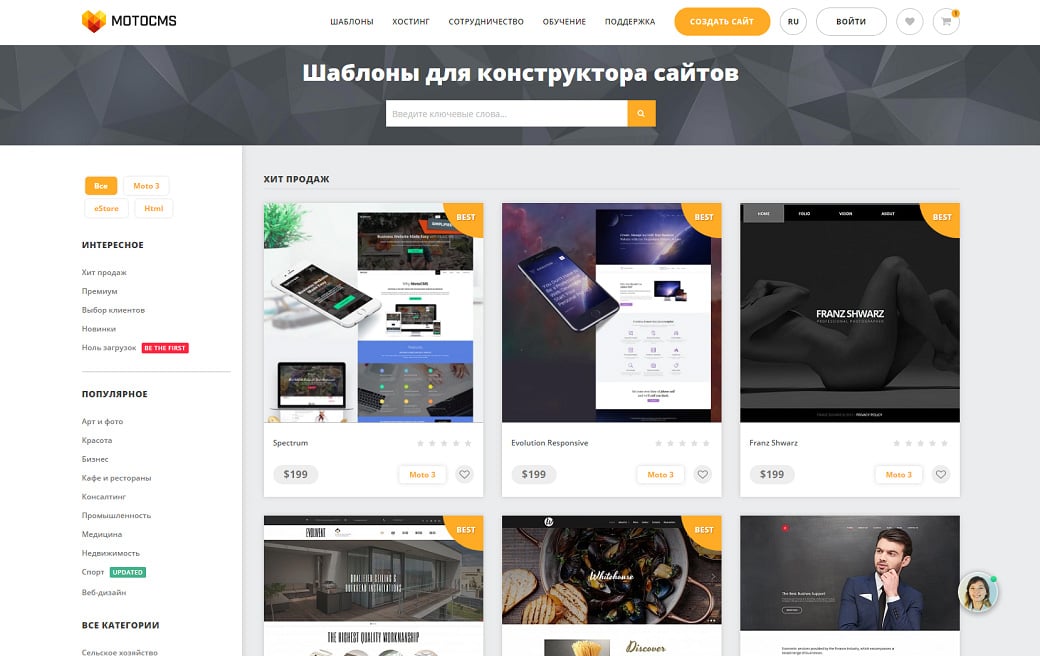 На сайте MotoCMS метод “ленивой загрузки” применен на страницах магазина шаблонов.