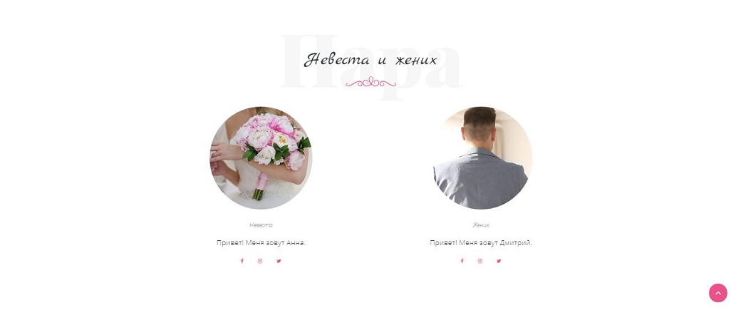 Многие гости наверняка захотят связаться с вами, чтобы уточнить детали по поводу праздника или просто поздравить вас. Благодаря встроенному виджету Социальные кнопки любой посетитель без проблем сможет перейти с вашего свадебного сайта на ваш профиль в соцсети и написать вам личное сообщение.