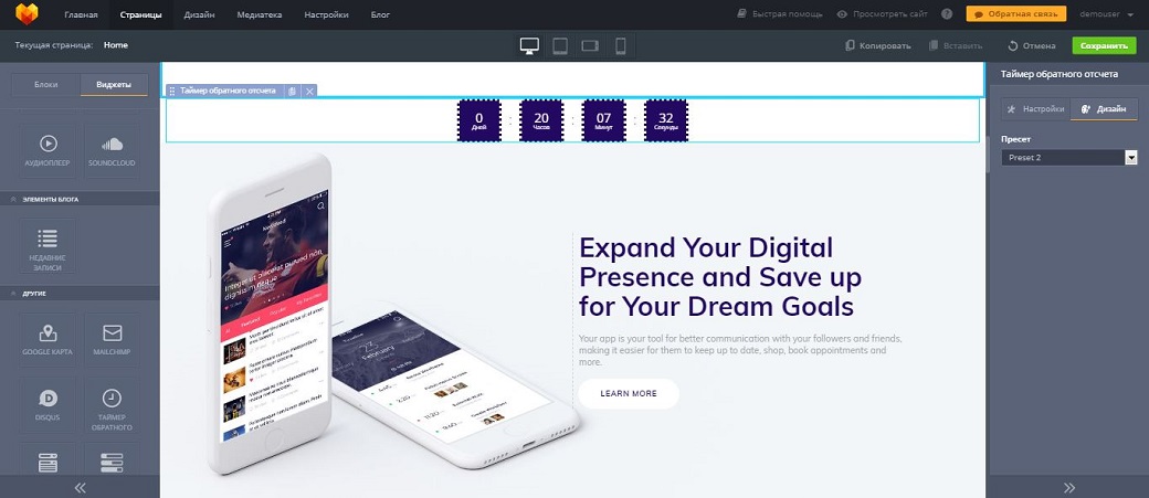 Повторюсь: будет гораздо лучше, если потенциальные пользователи узнают о вашем приложении еще до релиза. Создайте сайт, и расскажите людям о функционале будущего приложения. Предложите всем желающим принять участие в тестировании. Разместите на сайте счетчик обратного отсчета, чтобы сделать релиз более ожидаемым и привлечь внимание целевой аудитории. В шаблоне RubikApp для этого даже есть специальный виджет.