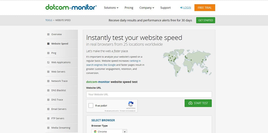 Инструмент Page Speed от Dotcom также проверяет производительность вашего сайта в разных точках по всему миру. Вы сможете узнать, насколько эффективно ваш сайт работает в различных браузерах, включая Chrome, Safari и Firefox. Также вы сможете оценить эффективность работы вашего сайта на Android-устройствах. В результате вы получите набор отчетов, таблиц, диаграмм и другой полезной информации, которая поможет вам увеличить скорость загрузки страниц.