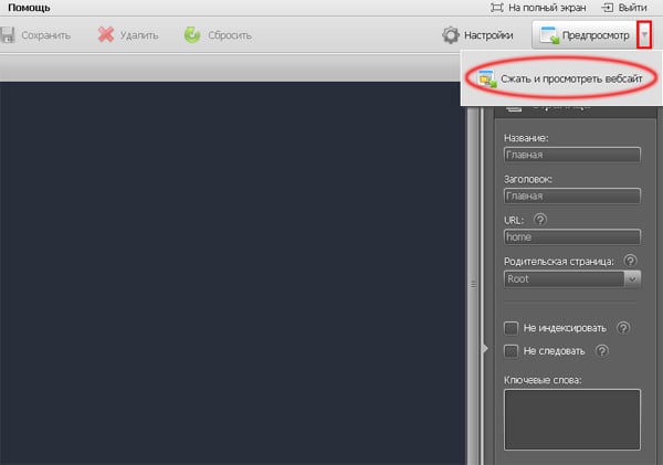 Новая функция «Сжать и просмотреть вебсайт» позволяет сжимать xml-файлы, что значительно уменьшит время загрузки сайта. Используйте данную опцию, после того, как вы закончили редактирование содержимого сайта. Имейте ввиду, что после внесения новых изменений вам будет необходимо снова применить опцию «Сжать и просмотреть вебсайт».