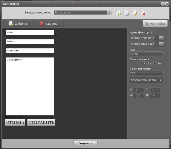 Теперь ее отображение в Панели управления абсолютно идентично тому, как она выглядит на самом сайте. Также добавлены настройки порядка полей и очереди перехода по полям формы.