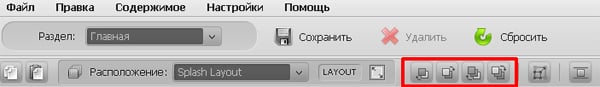 После того, как Вы определитесь с размером модуля, необходимо установить его расположение на сайте. В верхней панели инструментов найдите кнопку «Переместить вниз» и с ее помощью расположите фон на том уровне, на котором требуется.