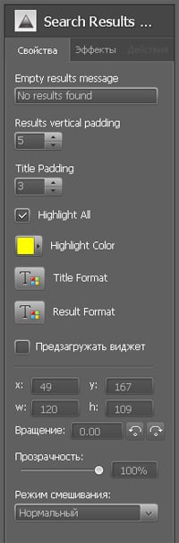 Вы можете откорректировать настройки модуля Search Results List: ввести фразу, которая будет отображаться, если искомая информация не будет найдена, задать «подсветку» найденных результатов и выбрать цвет для подсветки, определить формат текста для полученных результатов и многое другое.