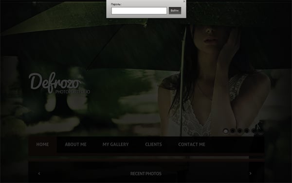 Вот так будет выглядеть страница Вашего сайта, если Вы защищаете ее паролем. Вверху располагается окошко с полем для ввода пароля, а остальная страница скрыта «затемененным» экраном, благодаря которому пользователь не сможет проявить активность на данной странице.