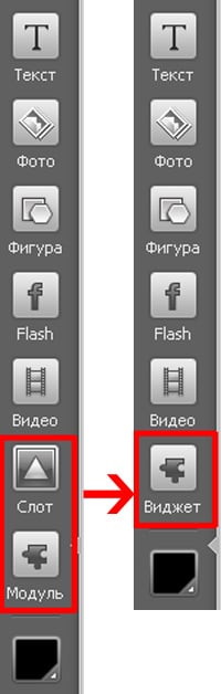 8. Объединение кнопок «Слоты» и «Модули» в одну кнопку «Виджет»