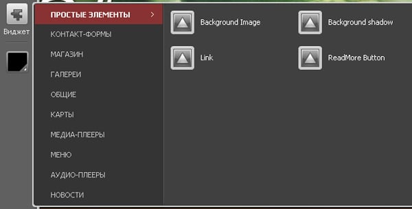 Для удобства работы с Панелью управления MotoCMS все слоты и модули теперь объединены в одну кнопку «Виджет». Все компоненты теперь находятся в одном месте, что значительно упрощает поиск необходимых элементов.