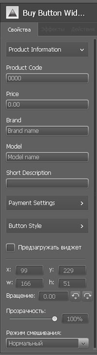 Button Style. Настройки внешнего вида кнопки «Купить».