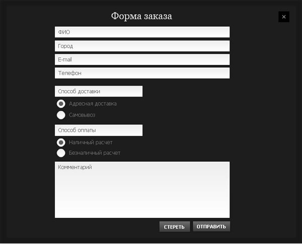 Для отправки формы заказа на почту клиенту, необходимо в настройках виджета указать страницу или всплывающее окно, где находится настроенная форма, через которую будет отправлен заказ.