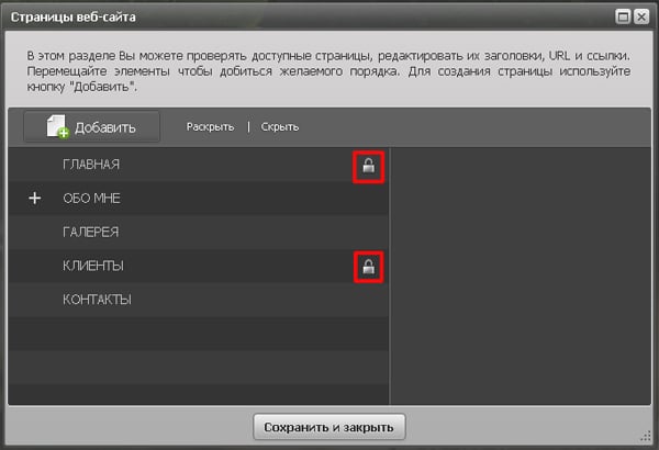 Для удобства все запароленные страницы будут отмечены значком с изображением замка.