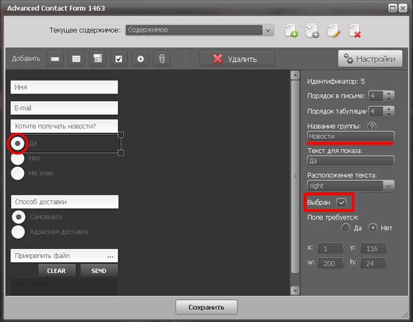 2. Новые возможности модуля Advanced Contact Form