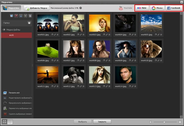 7. Интеграция с сервисами Picasa, Flickr и Facebook