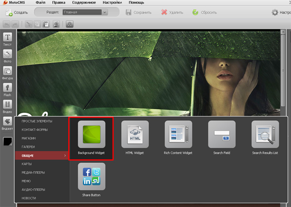 6. Модуль Background widget