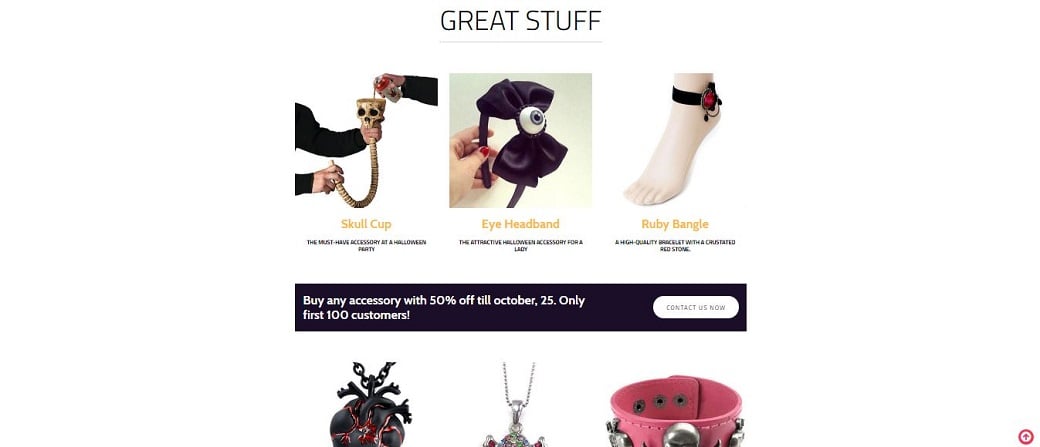 Ваш сайт будет пользоваться немалой популярностью, если с его помощью пользователи смогут не только узнать все о предстоящей вечеринке, но и приобрести праздничную атрибутику — костюмы, аксессуары и грим. Если у вас есть время и желание, перед тем, как создать сайт о Хэллоуине, закупите праздничные вещи, которые вы сможете предложить пользователям. Стильные готовые галереи помогут вам представить весь ассортимент товаров, а при желании вы сможете создать полноценный интернет-магазин, добавив к шаблону плагин eCommerce.