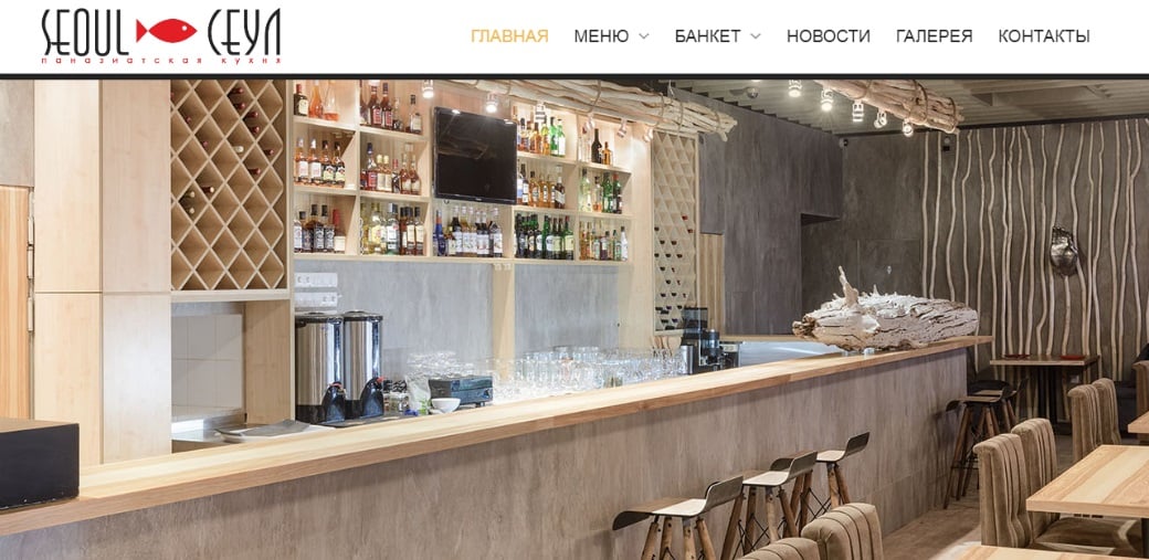 Создатель сайта арт-кафе “Сеул” в очередной раз доказал, что тематика шаблона не настолько важна, как его структура и функционал. При креативном подходе хороший сайт можно создать на основе любого адаптивного шаблона MotoCMS!