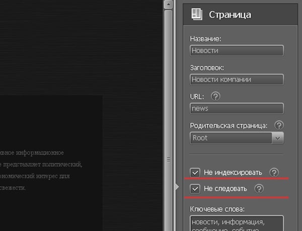 Использование функций сокрытия нежелательного текста или ссылок от индексации. Это поможет поисковому роботу определить какие страницы не должны попасть в индекс и определить ссылки по которым не нужно осуществлять переход. Для этого просто необходимо поставить галочки в чекбоксах и готово.