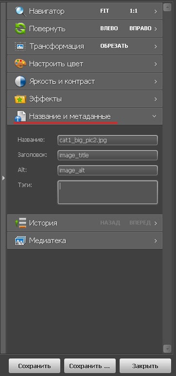 Вопрос связан с “Редактором изображений”. Для грамотной оптимизации изображений КАК ПРАВИЛЬНО заполнять «Название и метаданные»? Ряд конкретных вопросов: