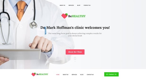 Медицинские сайты о здоровье обычно ориентированы на предоставление услуг или информации для своих клиентов. Они используют минималистичный дизайн и светлую цветовую схему (чаще всего в белых, синих и зеленых цветах). Это может объясняться многими причинами: безупречность белого цвета ассоциируется с чистотой клиники, синий или зеленый цвета встречаются в медицинской униформе, да и в целом психологический эффект этих цветов. Вы можете прочитать больше информации о цветовой схеме больничных сайтов здесь.