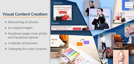 Professionelle Bilder sind der beste Weg, um den visuellen Inhalt Ihrer Website attraktiver zu machen. Mit dem Service erhalten Sie 10 bearbeitete Fotos, 10 einzigartige Bilder für Ihre Nische, FB-Cover, Website-Banner und ein benutzerdefiniertes Farbschema für Ihre Website.