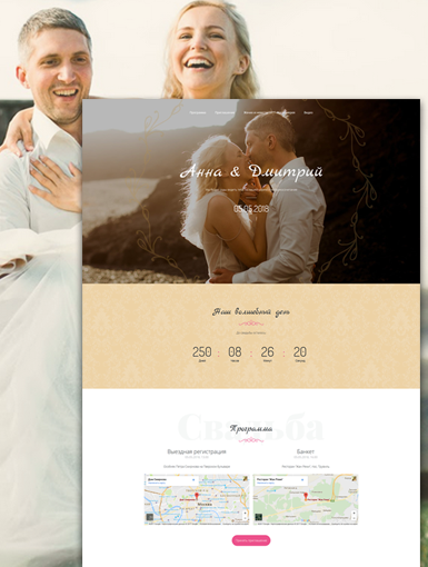 Еще одна интересная функция — встроенный счетчик, показывающий количество дней и часов до начала церемонии. Так ваши близкие смогут узнать точное время церемонии и прийти вовремя.